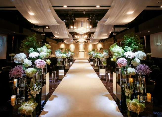 웨딩시티에서 가장 큰 홀로 높은 층고와 긴 버진로드 그리고 어두운 홀의 정석이죠!