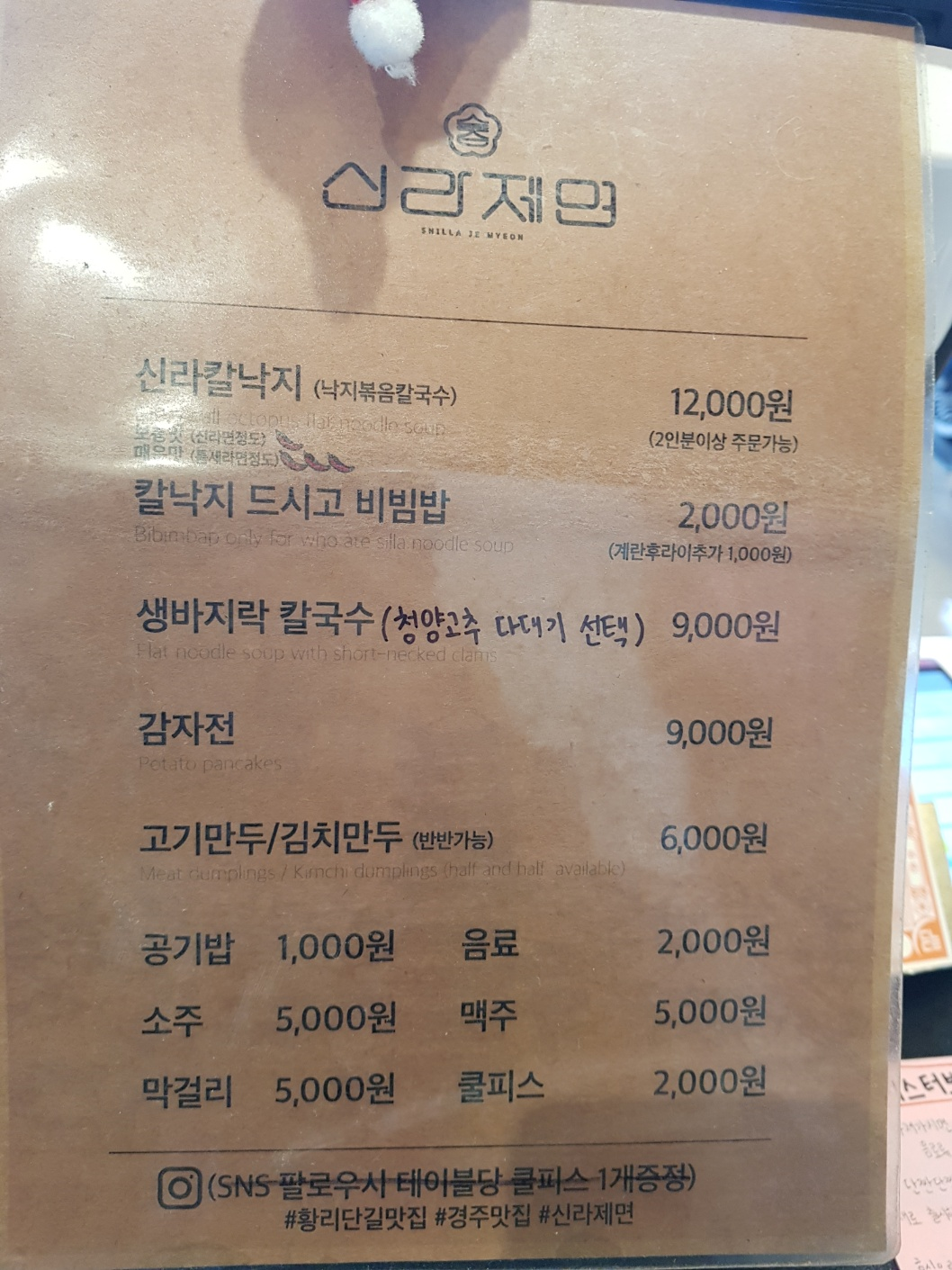 신라제면 메뉴판입니다:)