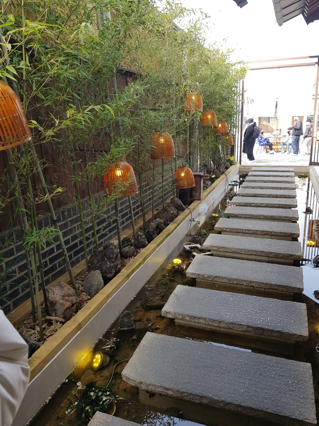 저 돌다리밑에는 연못처럼 되어있는데, 물고기도 있어요!