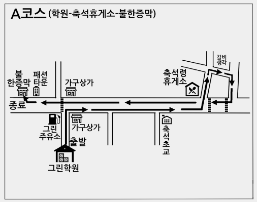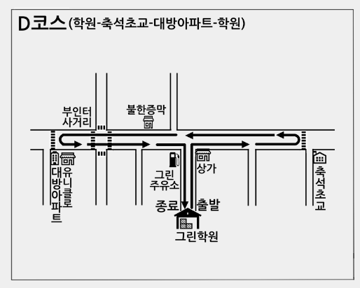D코스는 학원에서 출발해서 학원으로 도착하는 코스임에도 불구하고