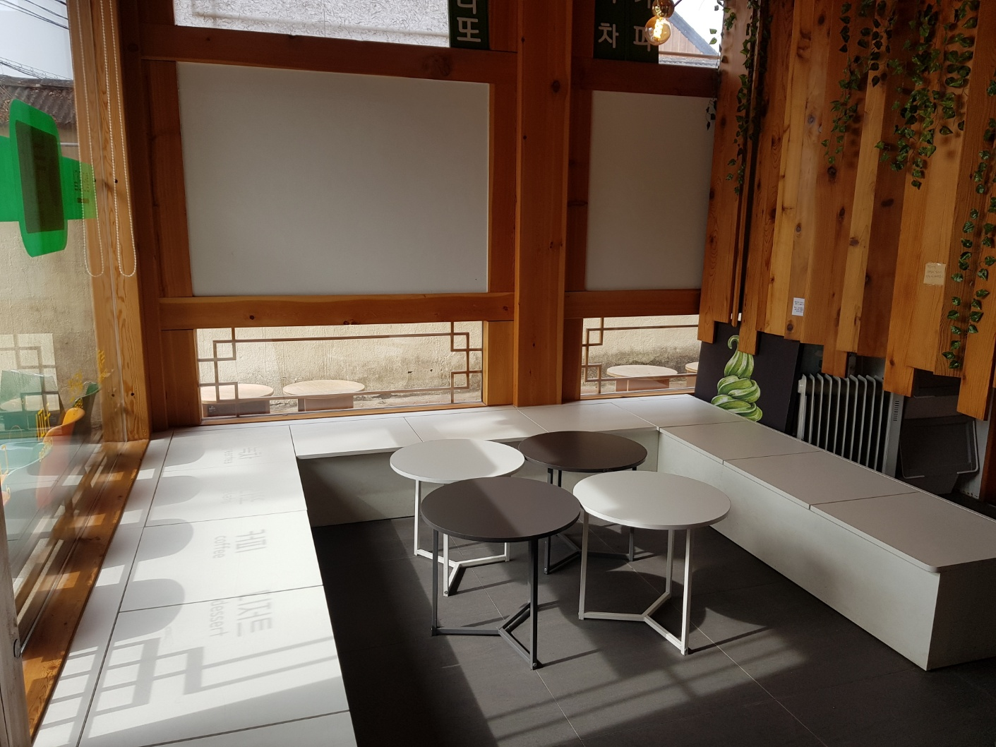 녹아 카페는 한옥인테리가 기본으로 되어있고 그 안에 모던 스타일의 소품으로 꾸며놓아서